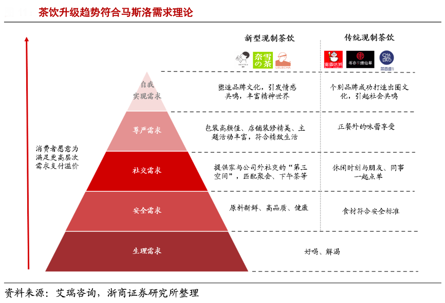 經(jīng)典案例:根據(jù)艾瑞咨詢、浙商證券研究所等綜合資訊表明,消費(fèi)者對(duì)消費(fèi)類產(chǎn)品及服務(wù)的多元化、個(gè)性化、品質(zhì)化、品牌化以及便捷化等消費(fèi)需求也在不斷提高,且對(duì)價(jià)格因素的敏感性逐漸下降。在人均消費(fèi)支出整體向上的趨勢(shì)下,新式茶飲作為“消費(fèi)升級(jí)類”產(chǎn)品受宏觀經(jīng)濟(jì)環(huán)境利好。消費(fèi)者對(duì)茶飲的需求逐步從單一的“解渴、好喝”提升到健康化、多元化、個(gè)性化、品牌化, 并愿意為實(shí)現(xiàn)更高層次的需求付費(fèi)。