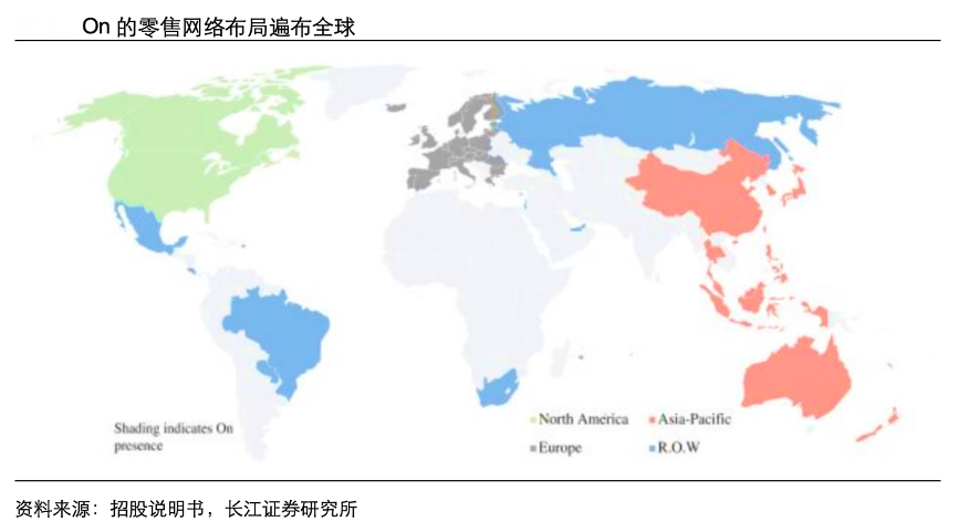 經(jīng)典案例:根據(jù)招股說明書、長江證券研究所等綜合資訊表明,On Running(On/昂跑)是一個以瑞士工藝和前沿科技、可持續(xù)發(fā)展為基礎(chǔ),致力于為 世界帶來革新性跑步體驗的高端運動品牌,由瑞士職業(yè)運動員、三屆世界冠軍兼六屆鐵 人三項冠軍 Olivier Bernhard 與兩位好友兼跑步愛好者 Caspar Coppetti 和 David Allemann 于 2010 年 1 月在瑞士蘇黎世一起創(chuàng)立。緩震著陸、強(qiáng)力回彈、輕盈質(zhì)感的設(shè)計理念始終是 On 的研發(fā)核心,其旗下所有鞋款的鞋底均搭載自有專利科技 CloudTec。截至 2021H1,On 在全球 60 多個國家擁有 8100 家零售店,其中自營店包括一家紐約旗艦店和四家中國零售店,截至目前中國已開 9 家自營店。