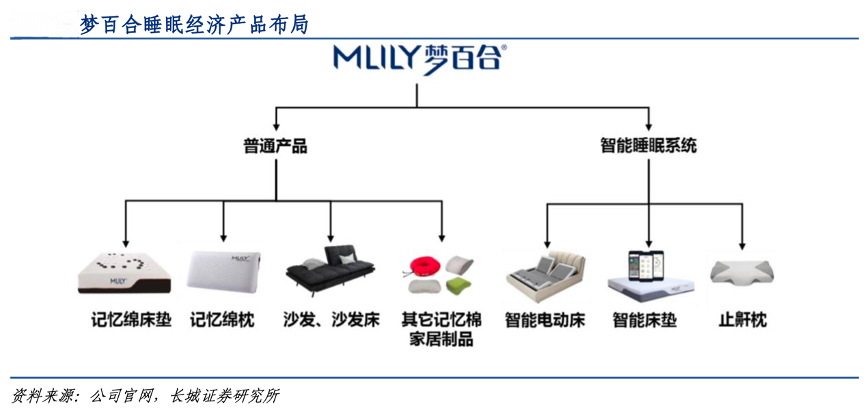 經典案例:根據公司官網、長城證券研究所等綜合資訊表明,除了春雨醫生,夢百合公司深化智能化生態圈,與海爾智家也達成協作。夢百合的床和床墊可以進入海爾智能門店,深度合作后還可進入空調門店。同時,夢百合的智能床、閱讀燈、音樂床墊等,都可以和海爾電視連接,在臥室即可以感受到3D影院的感覺,夢百合的睡眠經濟產品不斷擴容。