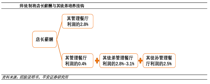 經(jīng)典案例:根據(jù)招股說明書、平安證券研究所等綜合資訊表明,海底撈公司采用“師徒制”進(jìn)行人才管理,海底撈的每一位新員工,在進(jìn)入公司后都會(huì)分配一位師傅,優(yōu)秀的徒弟由師父提拔,通過層層培訓(xùn)和考核最終晉升為店長,“師徒制”促進(jìn)海底撈自下而上裂變式培養(yǎng)人才及門店擴(kuò)張。