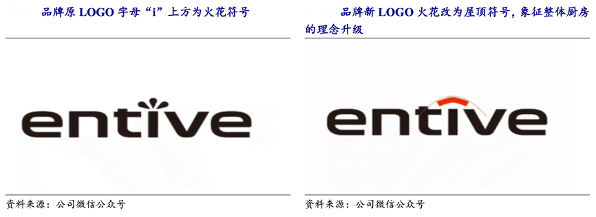 經(jīng)典案例:根據(jù)公司微信公眾號(hào)、開(kāi)源證券研究所等綜合資訊表明,2022 年 3 月,億田智能公司LOGO全新升級(jí),字母“i”上方的“火花”,升級(jí)成為“屋頂”的箭頭符號(hào),生動(dòng)詮釋從“集成廚電”到“整體廚房”的品牌升級(jí)理念。ENTIVE六大字符,分別取意EFFICENT—高效、NATURE—自然健康、TECENOLOGY—科技、INTELLIGENCE—智能、VALUE—價(jià)值、ECOLOGY—生態(tài)環(huán)保六重概念。