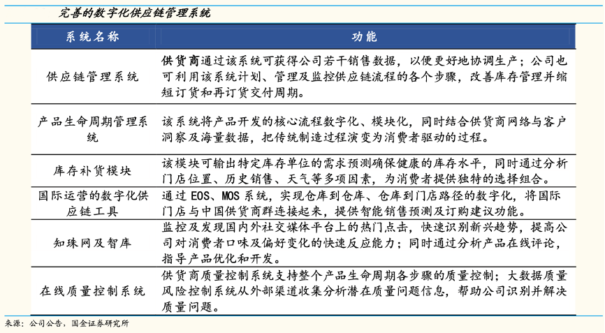 經(jīng)典案例;根據(jù)公司公告、國(guó)金證券研究所等綜合資訊表明,名創(chuàng)優(yōu)品將供應(yīng)商納入 SCM 供應(yīng)鏈管理系統(tǒng),信息同步靈活排產(chǎn),搭建了完善的數(shù)字化供應(yīng)鏈管理系統(tǒng)。