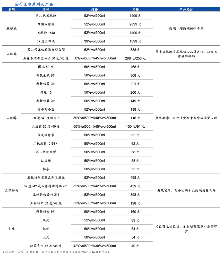 經典案例:根據京東、公司公告、國元證券研究所等綜合資訊表明,五糧液的產品系列及產品定位各有場景,價值突出。