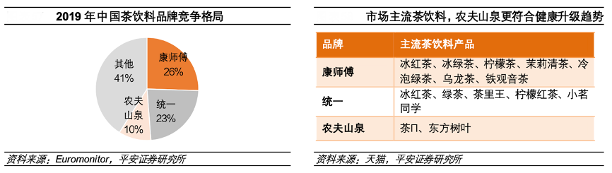 經(jīng)典案例:根據(jù)Euromonitor、天貓、平安證券研究所等綜合資訊表明,當市場被康師傅、統(tǒng)一的冰紅茶、冰綠茶等有糖茶占據(jù)主導(dǎo)時,農(nóng)夫山泉在 2011 年推出主打無糖概念的“東方樹葉”,最初上市時多次上榜“最難喝”飲料榜,后期“0 糖 0 卡”概念興起后,提前布局多年的東方樹葉迎來爆發(fā),據(jù) AC 尼爾森數(shù)據(jù)顯示,東方樹葉占據(jù)了50%以上的市場份額,自 2019 年起連續(xù)多年成為無糖茶第一品牌。