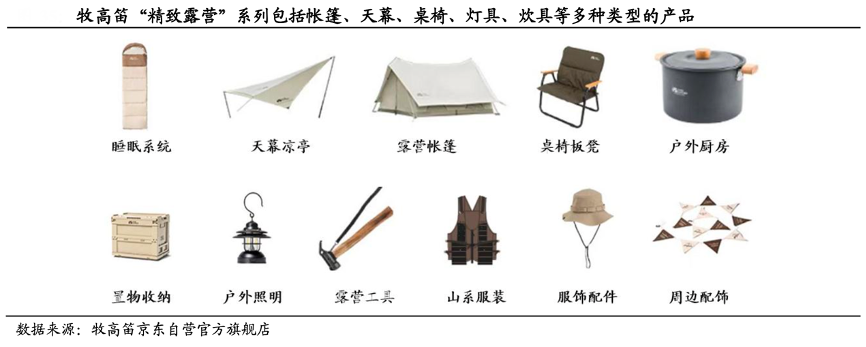 經(jīng)典案例:根據(jù)牧高笛京東自營(yíng)官方旗艦店、國(guó)泰君安證券研究等綜合資訊表明,牧高笛公司秉持“產(chǎn) 品+場(chǎng)景”的設(shè)計(jì)理念,逐步打造“精致露營(yíng)”、“精致野餐”、“精致徒步”產(chǎn)品線,產(chǎn)品在具備專業(yè)性能的基礎(chǔ)上,兼具實(shí)用性和體驗(yàn)感,可滿足露營(yíng)消費(fèi)者戶外出行的多樣化需求。