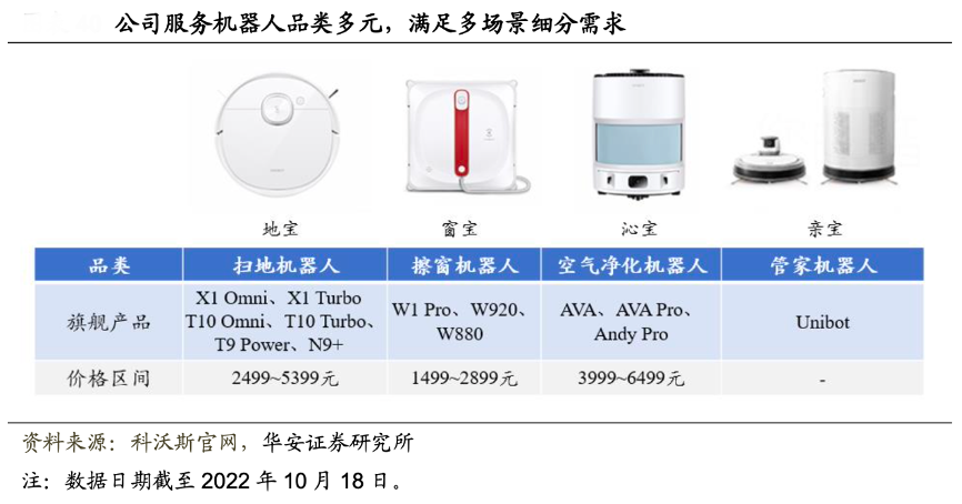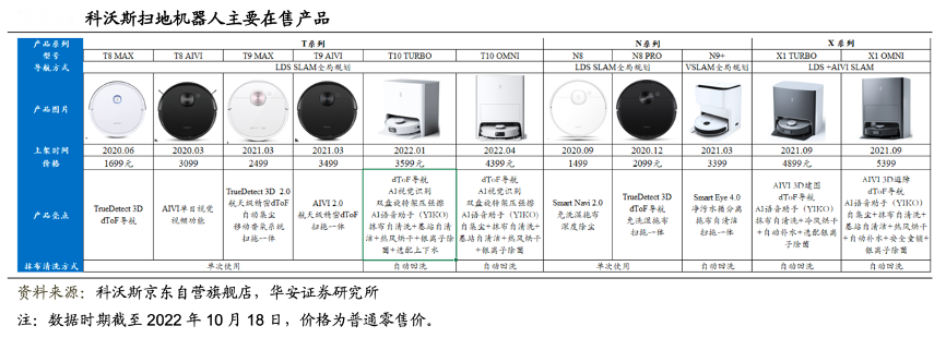 經(jīng)典案例:根據(jù)科沃斯京東自營旗艦店、華安證券研究所等綜合資訊表明,科沃斯公司掃地機器人主要在售產(chǎn)品包括一點的 K 系列和科沃斯的 T 系列、N 系列和 X 系 列,價格段從 799-5399 元不等,技術方面,公司產(chǎn)品力持續(xù)領先,是市 場上為數(shù)不多地同時擁有 LDS SLAM 和 VSLAM 全局規(guī)劃產(chǎn)品的領先企業(yè),公司產(chǎn)品的 導航方式涵蓋了市面上主流前沿技術,包括 D-ToF 激光導航、AIVI 視覺導航和 3D 結構 光導航,可實現(xiàn)掃地、拖地、自清潔、自集塵等多種功能,持續(xù)為用戶創(chuàng)造價值增量。