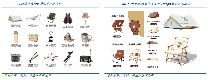 經典案例:根據天貓、國盛證券研究所等綜合資訊表明,牧高笛公司對戶外裝備及帳篷等新產品研發投入力度不斷加大,在注重產品環保材料和工藝研發的同時,打造適配高海拔、精致徒步、精致露營、精致野餐場景矩陣的產品,以及配備睡眠系統、廚房系統、收納系統、客廳系統的產品矩陣,旨在打造品類齊全的精致露營生活方式品牌。