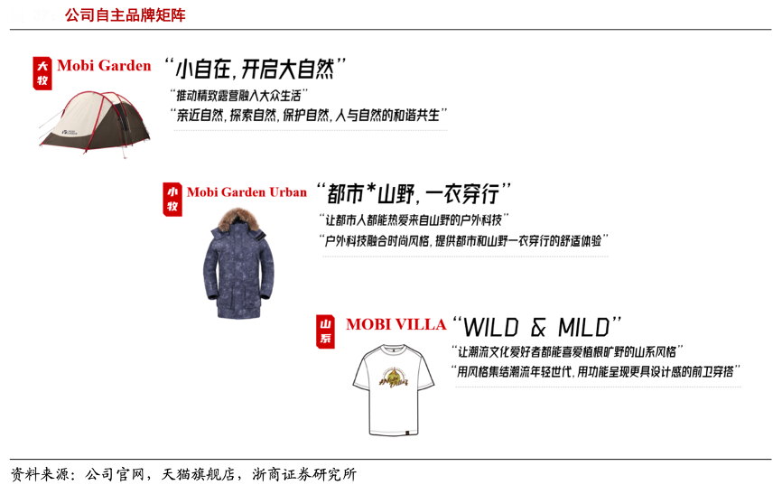 經典案例:根據公司官網、天貓旗艦店、浙商證券研究所等綜合資訊表明,2003年,牧高笛公司憑借一款“冷山”帳篷進入中國市場,開啟了自主品牌的發展之路。2009年公司切入戶外鞋服領域,并在 2018 年劃分大牧、小牧雙品牌,分事業部運營。其中的大牧品牌秉持“露營專業主義”理念,主打戶外露營帳篷及裝備,涵蓋高海拔露營、徒步露營、公園休閑、精致露營和旅行等戶外場景。