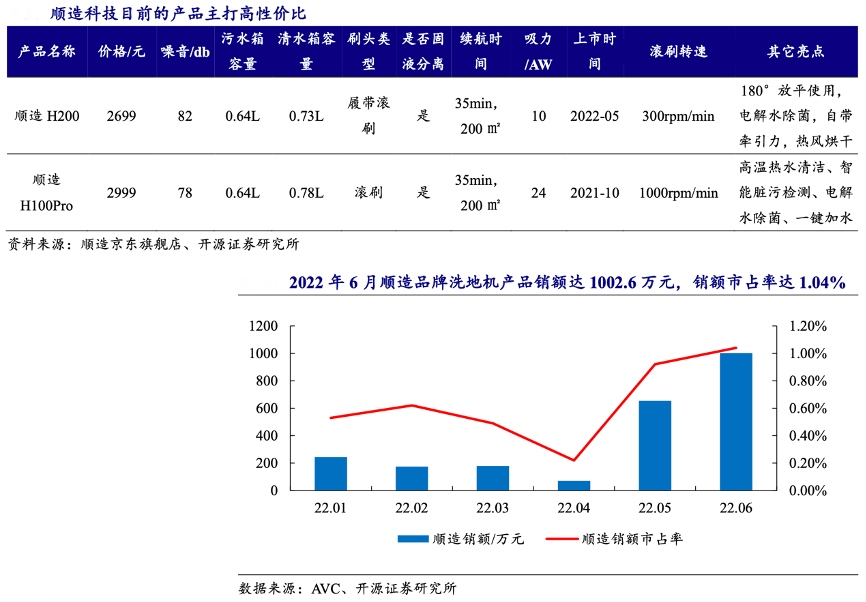 經典案例:根據順造京東旗艦店、AVC、開源證券研究所等綜合資訊表明,順造科技目前的產品主打高性價比,2022年6月線上產品均價為 2702 元,低于行業均價 3110 元,引領行業風潮。