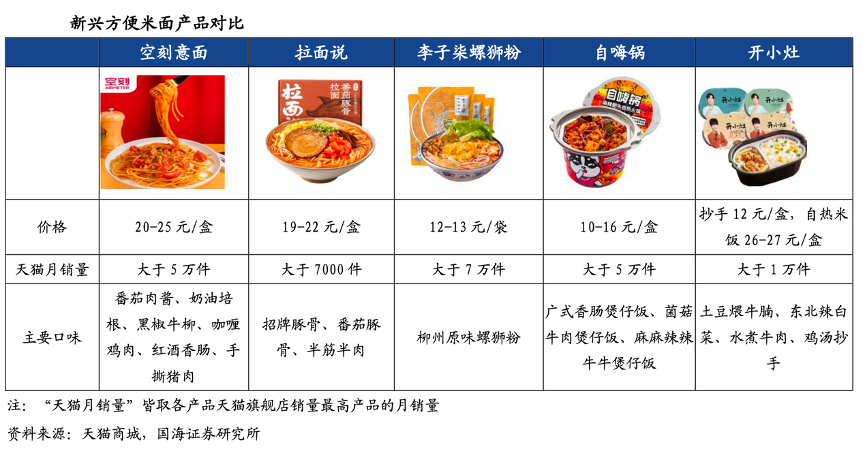 經(jīng)典案例:根據(jù)天貓商城、國海證券研究院等綜合資訊表明,輕烹食品出現(xiàn)了升級變化,除了為人們熟知的方便面、方便米粉、速凍水餃、微波菜肴之外,自熱小火鍋、自熱米飯、意面等輕烹食品新品類不斷涌現(xiàn)。空刻意面與拉面說,李子柒螺螄粉、自嗨鍋等產(chǎn)品相比,定價和定位相對高端,從天貓旗艦店的銷售情況來看也排名靠前。