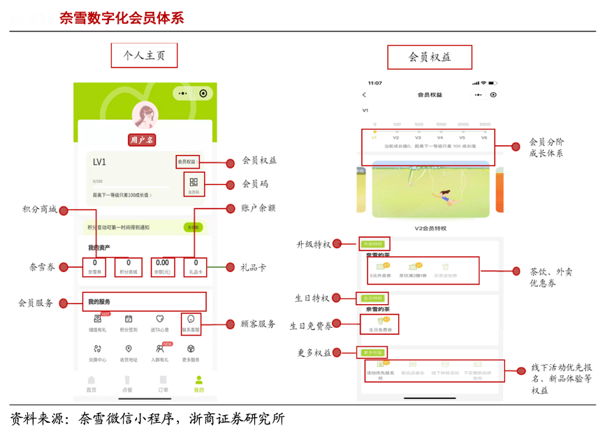 經典案例:根據奈雪的茶微信小程序、浙商證券研究所等綜合資訊表明,截至2021年6月30日,奈雪注冊會員數量達到約 36.5 百萬名,21Q3 活躍會員總數達到約 7.4 百萬名,活躍會員復購率約 30.3%。奈雪數字化會員體系運營成效顯著。此外,公司正積極收集線上訂單數據和用戶反饋,進一步優化自身產品和服務。