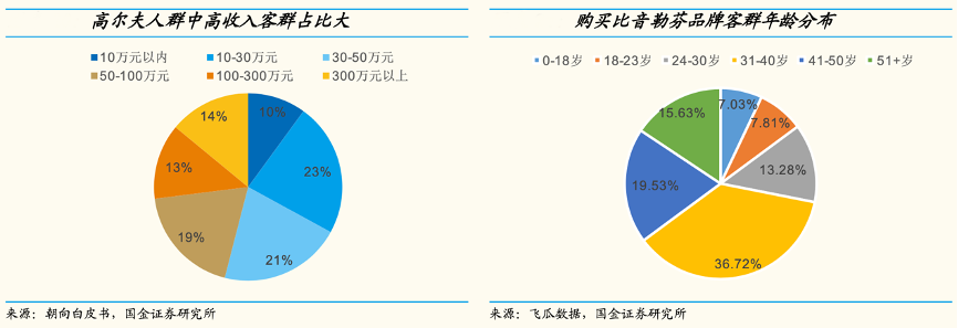 經典案例:根據朝向白皮書、飛瓜數據、國金證券研究所等綜合資訊表明,比音勒芬品牌從高爾夫差異化切入高端服飾賽道,核心客群定位 25~40 歲高收入男性,多年以來其堅持高品質、高品位、高科技和創新的“三高一新”產品設計研發理念,客戶粘性高、復購率高。