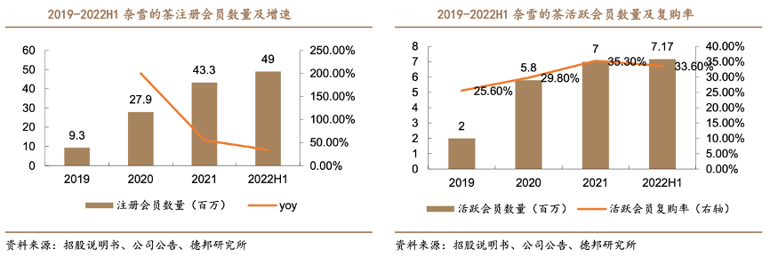 經典案例:根據招股說明書、公司公告、德邦研究所等綜合資訊表明, 2019 年 9 月奈雪的茶推出品牌會員體系,設立 1-6 級分階獎勵機制,會員積分免費兌換品牌產品。2022年中報,奈雪的注冊會員數量達到 4900 萬名,同比增長 34.25%,其中活躍會員數 717 萬名,活躍會員復購率達到 33.60%。