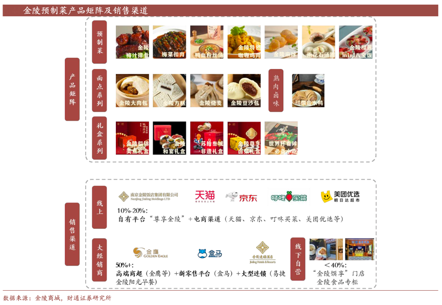 經典案例:根據金陵商城、財通證券研究所等綜合資訊表明,金陵飯店公司的預制菜業務立足南京并輻射長三角區域,已實現連鎖酒店、高端商超、線上平臺、線下團購等多維度 覆蓋,在盒馬鮮生等商超渠道、在部分自營酒店設立“金陵食品專柜”、線下自營門店“金陵饌享”,推動金陵特色食品產業化、規模化發展。22H1 食品科技公司實現營收 1380 萬元,凈利潤 11.2 萬,同比增長 242.1%,凈利率 2.8%,同比+1.6pct。