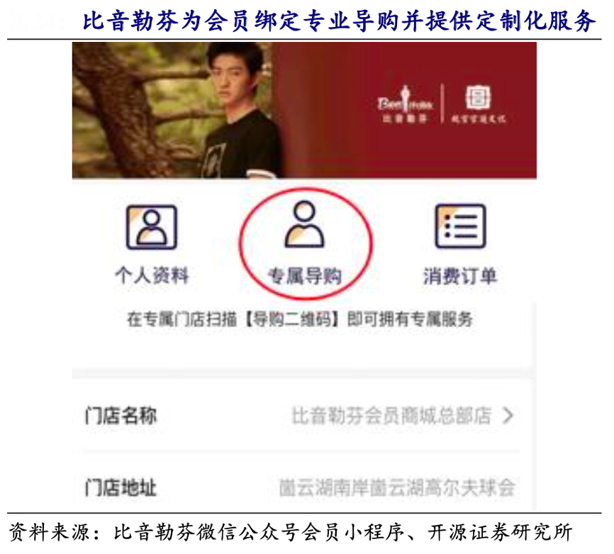 經典案例:根據比音勒芬微信公眾號會員小程序、開源證券研究所等綜合資訊表明,比音勒芬為會員綁定專業導購并提供定制化服務,在消費后店員會記錄該顧客的衣服尺碼及偏好,并定期根據顧客需求通過微信定向更新新款產品信息。顧客可以選擇到店或者在家試穿,門店 可直接將新品快遞到家完成遠程交易。同時,其十分關注VIP 的需求并 定期維護,如定期邀請 VIP 進店、生日回訪、贈送禮品或邀請 VIP 成為首批新品體 驗官等,增加VIP 品牌粘性。
