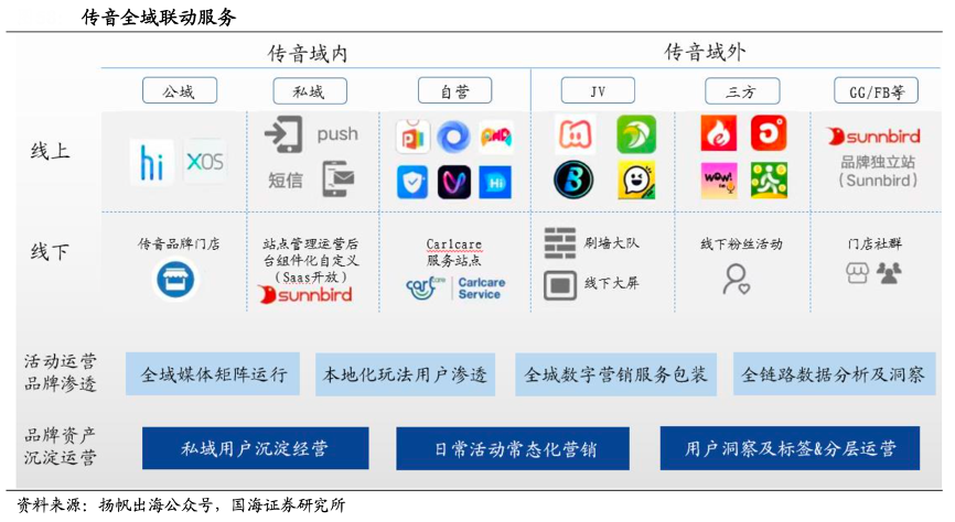 經(jīng)典案例:根據(jù)揚(yáng)帆出海公眾號(hào)、國(guó)海證券研究所等綜合資訊表明,傳音作為手機(jī)起家的硬件廠商,從操作系統(tǒng)、應(yīng)用商店開(kāi)始,拓展到工具等基礎(chǔ)產(chǎn)品矩陣,目前已經(jīng)憑借手機(jī)與移動(dòng)互聯(lián)網(wǎng)業(yè)務(wù),打通了非洲全部 54 個(gè)國(guó)家全鏈路運(yùn)營(yíng),構(gòu)建了完整的流量流轉(zhuǎn)渠道,具備廣泛被直接觸達(dá)的第一手非洲互聯(lián)網(wǎng) 用戶,以及與Google、Meta等巨頭相當(dāng)?shù)牧髁扛采w能力。