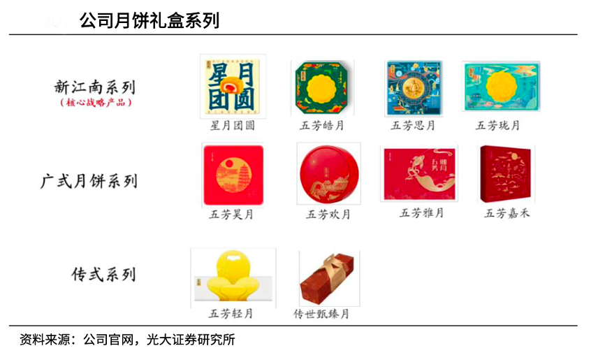 經典案例:根據公司官網、光大證券研究所等綜合資訊表明,五芳齋公司月餅業務自 2016 年起步,已拓寬至蘇氏、廣式、新式等多樣化的品類。新江南糯月餅系列作為戰略發展核心,特色在于“四層流心糯月餅”,其豐富的口感層次和獨特風味,自 2019 年上市以來,與市場其他產品形成差異化競爭,迅速贏得了消費者的喜愛。