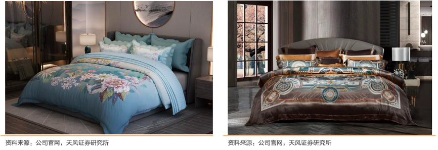 經典案例:根據公司官網、天風證券研究所等綜合資訊表明,富安娜公司原創設計獨幅平網印花與新國繡數碼印花工藝,平網印花工藝制版難、藝術性高、產量少、耗時長,將藝術詮釋于產品矩陣上,打造高品質的居家睡眠生活。