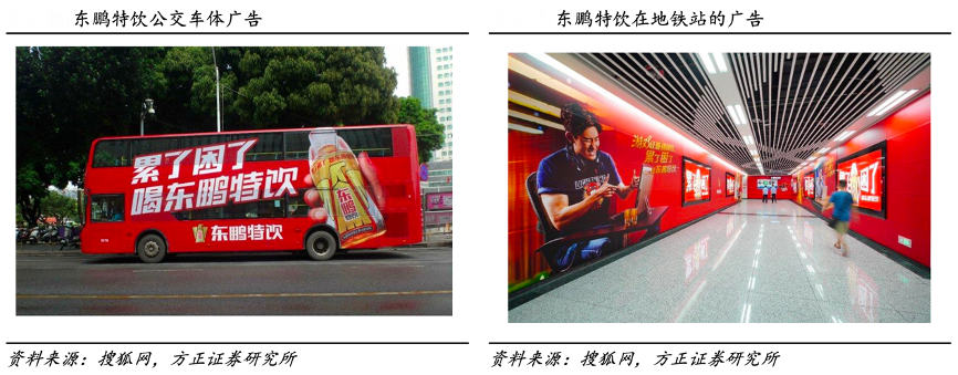 經(jīng)典案例:根據(jù)搜狐網(wǎng)、方正證券研究所等綜合資訊表明,在宣傳密度方面,2019年東鵬特飲公司推行了飽和式的營銷策略,加強(qiáng)和消費(fèi)者日常更貼近 的、接觸更頻繁的“地面廣告”,包括公交車、候車亭、T 牌、墻體廣告等。“地 面廣告”提高了消費(fèi)者的覆蓋密度,同時(shí)也降低了公司宣傳推廣成本。