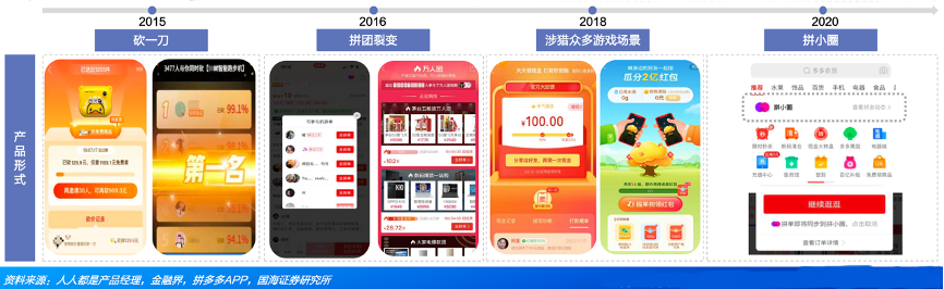 經典案例:根據人人都是產品經理、金融界、拼多多APP、國海證券研究所等綜合資訊表明,自APP上線至今,拼多多陸續推出多種好友互動及游戲產品,2020年上線“拼小圈”,基于用戶好友的真實購物行為建立內容平臺,促進站內“種草到決策”的閉環建立。
