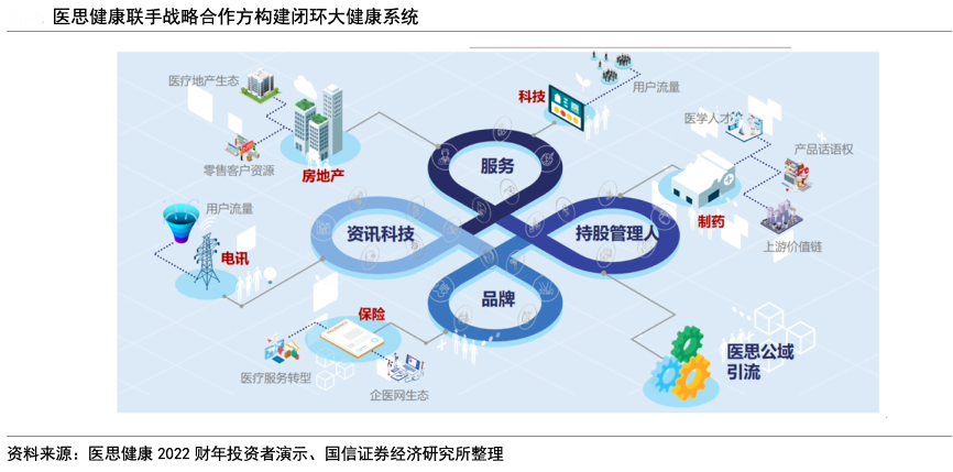 經典案例:根據醫思健康官方公眾號、國信證券經濟研究所等綜合資訊表明,醫思健康公司 2022 年 6 月與房地產投資管理公司凱龍瑞集團及亞洲聯合基建控股有限公司成立合資公司,公司出資占合資公司已擴大發行股本總額的 30%。合資公司將在中國香港建設醫療級別專用大廈,醫思健康亦將取得大樓冠名權,有助于提升品牌知名度。