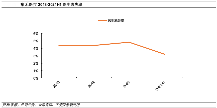 經(jīng)典案例:根據(jù)公司公告、公司官網(wǎng)、平安證券研究所等綜合資訊表明,雍禾醫(yī)療推出了《雍禾醫(yī)療醫(yī)生分級診療體系白皮書》,從 24 個維度對 醫(yī)生進(jìn)行考核,公司的分級體系將醫(yī)生分為雍享院長、雍享主任、業(yè)務(wù)院長和業(yè)務(wù)主任四檔,對應(yīng)不同的收費(fèi)標(biāo)準(zhǔn)和薪酬標(biāo)準(zhǔn),賦予醫(yī)生個人能力更高權(quán)重,價格體系更加直觀、透明。通過分級診療體系,公司更好留住 了醫(yī)生,2020 年公司醫(yī)生的流失率為 4.8%,根據(jù)沙利文的資料,其遠(yuǎn)低于國內(nèi)植發(fā)機(jī)構(gòu)的醫(yī)生流失率。