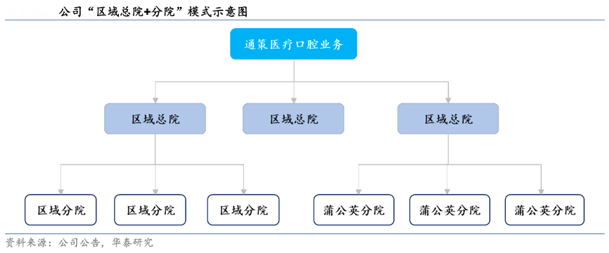 經(jīng)典案例:根據(jù)公司公告、華泰研究等綜合資訊表明,通策醫(yī)療公司充分發(fā)揮旗下核心醫(yī)院的資源優(yōu)勢,通過逐漸成熟并經(jīng)過市場驗證的“區(qū)域總院+分院”模式,實現(xiàn)各層級醫(yī)院品牌和資源的有效整合。具體來說,公司集中優(yōu)勢資源將每個區(qū)域總院打造為當?shù)赜布?guī)模和技術(shù)實力領(lǐng)先的醫(yī)院,由區(qū)域總院對 醫(yī)生診療水平和學術(shù)能力提供支撐,并持續(xù)強化其品牌影響力。