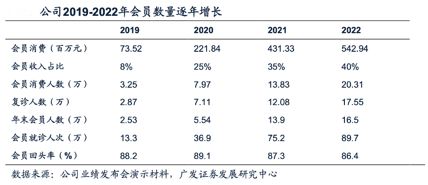 經典案例:根據公司業績發布會演示材料、廣發證券發展研究中心等綜合資訊表明,固生堂通過日趨完善的會員制度及客戶反饋系統,與客戶建立長期關系,進一步增加了會員人數和會員就診次數。2022年受到疫情影響,會員的回頭率和平均消費同比略有下降,然而仍明顯高于同年非會員的回頭率和平均消費,說明會員客戶的粘性較高、消費能力較強。