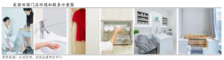 經典案例:根據公司官網、安信證券研究中心等綜合資訊表明,美麗田園提供貼心、專業的服務以及高級的裝修。1)服務細致、貼心、安全。堅持以“客戶關懷為中心”,以“標準流程之上有敏感度、有溫度的卓越服務”為宗旨,嚴格消毒所有用品,化妝間、浴室等房間一客一消。2)服務專業化。建立美麗田園培訓中心,為美容師提供專業培訓,并且自己研發優質產品,提供專業化服務,另外采購多款專業化設備,并獨家開發維納斯抗衰女神機。3)門店裝修高級。裝修風格以輕奢現代風為主,大廳明亮,房間整潔、 私密。