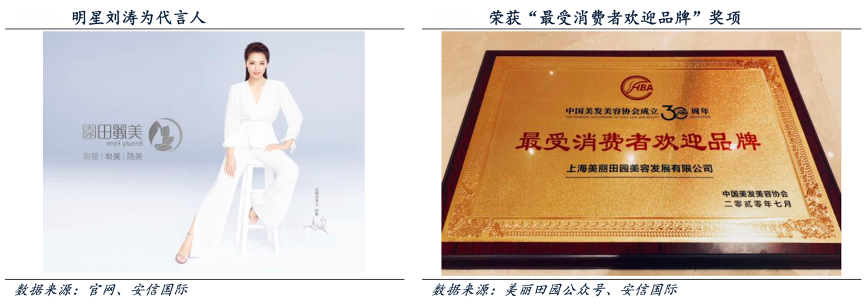 經(jīng)典案例:根據(jù)官網(wǎng)、美麗田園公眾號、安信國際等綜合資訊表明,在傳統(tǒng)美容服務(wù)市場(直營店),美麗田園公司以市占率0.2%排行業(yè)第一。公司邀請女明星劉濤為品牌代言人,擴大市場影響力,并獲得時尚 COSMO 年度美容連鎖機構(gòu)大獎、時尚 COSMO 年度達人推薦品牌大獎、年度煥新經(jīng)典品牌、年度人氣品牌、最受女性歡迎品牌及上海美發(fā)美容五星級企業(yè)等獎項。