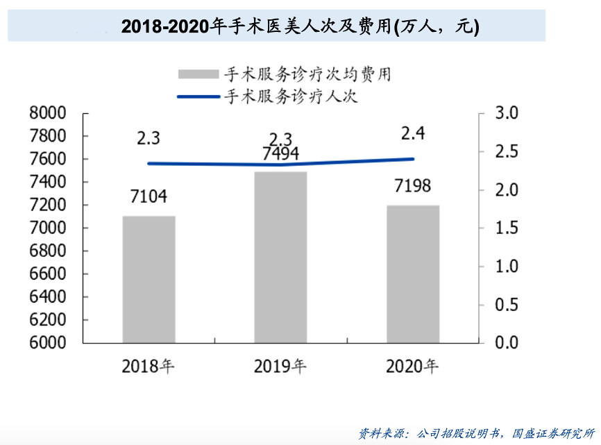 經典案例:根據公司招股說明書、國盛證券研究所等綜合資訊表明,伊美爾手術業務主要包括眼部手術、鼻部手術、胸部整形手術、脂肪手術等美容整形手術。從診療人次來看,2018-2020年基本穩定,分別為2.3/2.3/2.4萬人;從次均費用來看,2018-2020年分別為7104/7494/7198元,但不同項目之間價格分化較大。