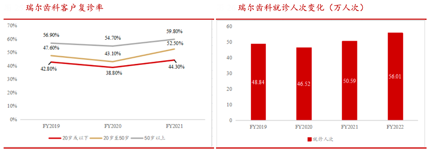 經典案例:根據華西證券等綜合資訊表明,得益于高水平醫護資源,瑞爾齒科高質量服務拉動就診人次和客戶復診率齊增長。其擁有嚴格的醫護選拔條件,造就了高質量服務醫護團隊,從源頭環節抓客戶滿意度。經過多年精細化經營,瑞爾齒科客戶忠誠度平均達到 45%左右,就診人次逐年突破,最高突破 56 萬人。