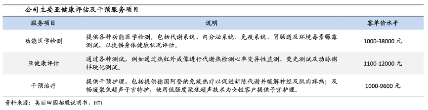 經典案例:根據美麗田園招股說明書、HTI等綜合資訊表明,亞健康評估及干預服務的新客戶通常由傳統美容服務吸引而來。美麗田園客戶向公司的健康顧問咨詢,健康顧問將評價客戶是否需要進行亞健康檢測、干預或女性專用護理程序。如果客戶對亞健康檢測程序感興趣并有需要,客戶服務人員將協助客戶進行預約,而注冊護士將于整個項目中協助客戶。進行檢測之后,醫生將查閱客戶的報告,并向客戶推薦合適的干預項目。