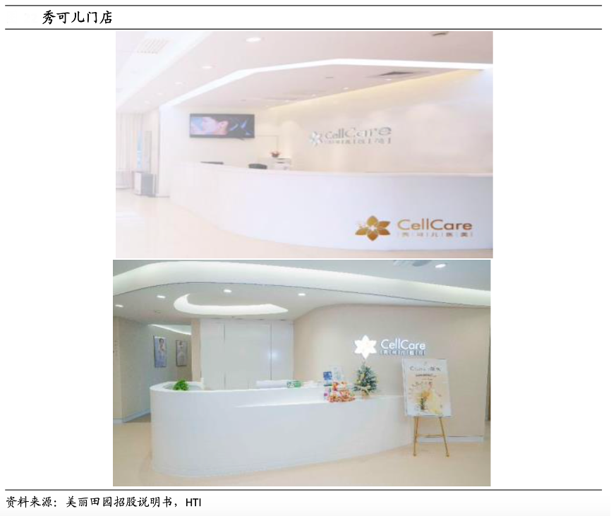 經典案例:根據美麗田園招股說明書、HTI等綜合資訊表明,憑借先進設備及經驗豐富的專業服務人員,美麗田園公司亦提供優質的醫療美容服務,以進一步補充身體及皮膚護理服務。于往績記錄期間,公司亦在較少情況下提供其他服務,例如雙 眼皮構建及脂肪填充服務。截至 2022 年 12 月 20 日,公司通過秀可兒門店提供 10 類 醫療美容服務,涵蓋超過 300 個 SKU。