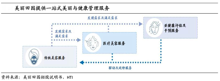 經典案例:根據美麗田園招股說明書、HTI等綜合資訊表明,美麗田園公司服務涵蓋個性化身體及皮膚護理服務(包括傳統美容服務及醫療美容服務)以及亞健康評估及干預服務,通過不斷引進新技術、新設備、新產品及擴大服務組合,提高客戶忠誠度及滿足客戶多變的需要。