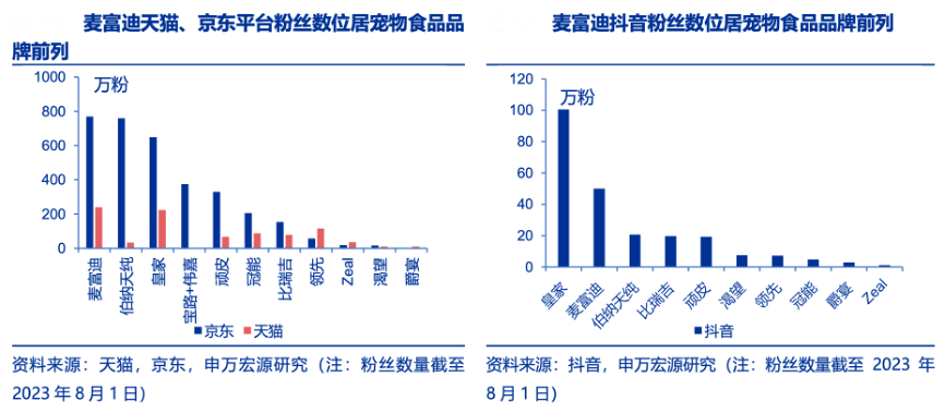 經典案例: 根據天貓、京東、抖音、申萬宏源研究等綜合資訊表明,乖寶寵物公司將 80 后、90 后及 Z 世代作為目標客戶群體,并針對性進行品牌營銷,包括贊助熱播綜藝、線上平臺推廣、打造聯名產品等等,同時逐步進行消費者教育,獨家冠名短劇《家有惡貓》,普及寵物飼養知識,引導消費者樹立健康的養寵觀念,持續樹立“有貓有狗,就有麥富迪”的品牌理念,品牌力持續增強。