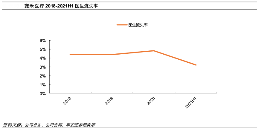 經典案例:根據公司公告、公司官網、平安證券研究所等綜合資訊表明,雍禾醫療推出了《雍禾醫療醫生分級診療體系白皮書》,從 24 個維度對醫生進行考核,保證了服務質量的同時,細化醫生的薪酬考核標準。公司的分級體系將醫生分為雍享院長、雍享主任、業務院長和業務主任四檔,對應不同的收費標準和薪酬標準。通過分級診療體系,公司更好留住 了醫生,2020 年公司醫生的流失率為 4.8%,根據沙利文的資料,其遠低于國內植發機構的醫生流失率。