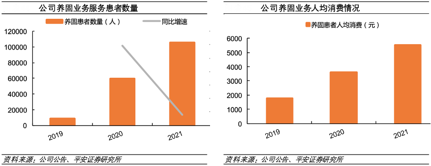 經(jīng)典案例:根據(jù)公司公告、天安證券研究所等綜合資訊表明,雍禾醫(yī)療2021年養(yǎng)固業(yè)務(wù)服務(wù)患者的數(shù)量達(dá)到 10.5 萬(wàn)人,增速達(dá)到 78%,患者人數(shù)快速增長(zhǎng)。 同時(shí)公司養(yǎng)固業(yè)務(wù)人均消費(fèi)不斷增加,2021年為 5531元,公司養(yǎng)固業(yè)務(wù)量?jī)r(jià)雙升。