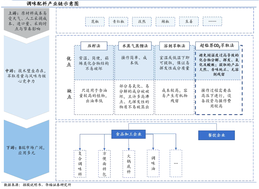 經典案例:根據招股說明書、華福證券研究所等綜合資訊表明,仲景食品公司公司調味配料以花椒、辣椒等香辛植物提取物為主,近年隨川味食品的不斷推廣而快速發展,例如火鍋底料、川調(川菜與川味休閑食品帶動)的持續滲透花椒調味配料的應用范圍不斷拓寬。