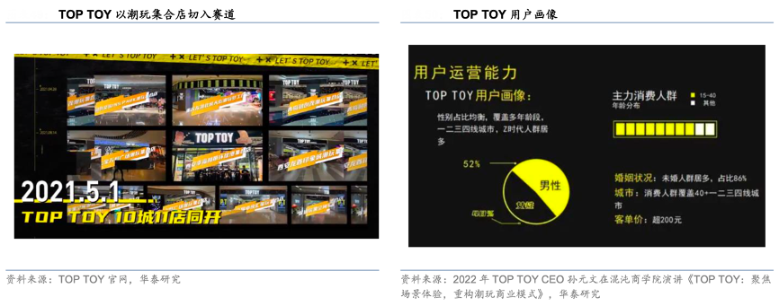 經典案例:根據TOP TOY官網、2022年TOP TOY CEO孫元文在混沌商學院演講《TOP TOY:聚集場景體驗,重構潮玩商業模式》、華泰研究等綜合資訊表明,TOP TOY聚焦 10-40 歲的消費群體,為其提供 9 大品類,盲盒、手辦、娃娃、合 金、大眾玩具、積木、拼裝、雕像以及原創產品。截至 2023 年 6 月 30 日,TOP TOY 提 供約 7,000 個 SKU。