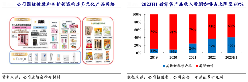 經典案例:根據巨星行動公眾號、開源證券研究所等綜合資訊表明,巨星傳奇公司新零售產品線豐富,繼 2020 年《周游記》 的播出成功為魔胴咖啡打響名號后,公 司隨即推出帶有周同學包裝的特別版魔胴咖啡吸引周杰倫粉絲群體、提高復購率。 截至 2022 年,周同學特別版魔胴咖啡對公司收入貢獻近 25%,占魔胴咖啡總銷售 額的 57%,明星 IP 聯名助銷效果顯著。根據灼識咨詢,2023 年魔胴咖啡銷量、銷售額均位列中國防彈飲料賽道第一。