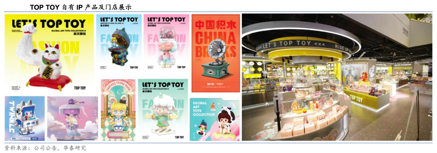 經典案例:根據公司公告、華泰研究等綜合資訊表明,截至 2023 年 6 月 30 日,TOP TOY 提供約 7,000 個 SKU。不 同于以玩具反斗城為代表的傳統玩具零售商(大多僅銷售第三方品牌),TOP TOY 還通過 IP 聯名、推出自有 IP 方式打造自有產品。TOP TOY 已于 80 個流行品牌 IP 建立了聯名關 系,并與 IP 許可方聯名開發產品。