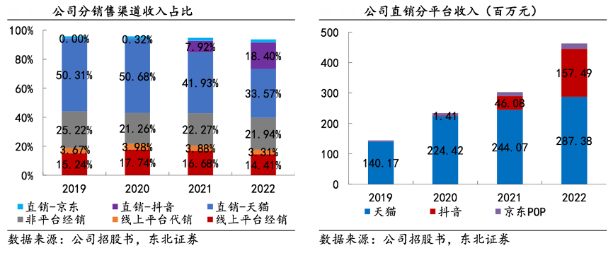 經(jīng)典案例:根據(jù)公司招股書、東北證券等綜合資訊表明,潤本目前以天貓、京東、拼多多和抖音等電商平臺銷售為主,其中最早布局天貓平臺,通過長期渠道建設(shè),逐漸掌握成熟的線上運作模式,并積累起龐大的線上客戶資源,市場份額快速提升,潤本品牌 2020-2022 年連續(xù)三年在天貓平臺的蚊香液銷售額排名第一,市占率分別為 16.42%、18.32%、19.99%。
