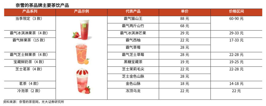 經典案例:根據奈雪的茶官網、光大證券研究所等綜合資訊表明,奈雪提供包括鮮果茶、鮮奶茶及純茶在內的多種選擇,平均 ASP 為 27 元。奈雪的茶平均每周推出一款新茶飲以豐富消費者選擇,此外其會結合當季水果推出季節性茶飲,三大最暢銷季節性茶飲分別為霸氣芝士水蜜桃、霸氣楊梅記憶、Miss 可可寶藏茶。2020年其前九個月合計售出 5.2 百萬杯。
