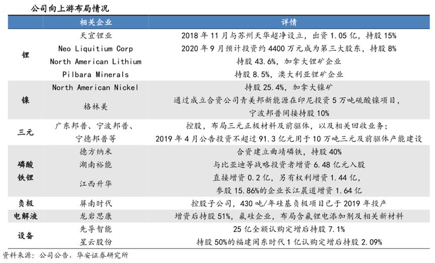 經(jīng)典案例:根據(jù)公司公告、華安證券研究所等綜合資訊表明,寧德時代公司掌握了產(chǎn)業(yè)鏈話語權(quán),其專利遍布產(chǎn)業(yè)鏈各大環(huán)節(jié),技術(shù)向上游滲透。2020年上半年疫情影響下,毛利率變化凸顯其產(chǎn)業(yè)鏈龍頭地位。預(yù)收賬款彰顯對下游話語權(quán),“CTP”和“CTC”技術(shù)向下游滲透。其在鋰電全產(chǎn)業(yè)鏈進行布局,把控核心原料;立足于長期發(fā)展,190億元投資產(chǎn)業(yè)鏈上下游優(yōu)質(zhì)企業(yè)。