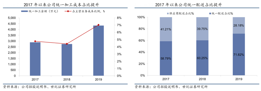 經(jīng)典案例:根據(jù)公司招股說(shuō)明書、世紀(jì)證券研究所等綜合資訊表明,同慶樓公司于 2014 年成立了中央廚房,集中對(duì)公司門店所需的半成品進(jìn)行加工和配送以保證食品質(zhì)量安全,提升菜品品質(zhì)穩(wěn)定性,目前門店 SKU 通過(guò)中央廚房統(tǒng)一配送、標(biāo)準(zhǔn)化烹飪工藝以及門店自主創(chuàng)新方式的比例約為 4:3:3。