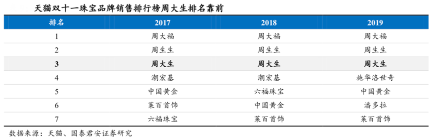 經(jīng)典案例:根據(jù)天貓、國泰君安證券研究等綜合資訊表明,周大生電商渠道布局領(lǐng)跑行業(yè),成立獨(dú)立團(tuán)隊彰顯渠道變革決心。周大生自 2013 年起開始組建電 商團(tuán)隊,加速布局電商渠道,2016年其品牌產(chǎn)品在天貓雙十一銷售排名前三。