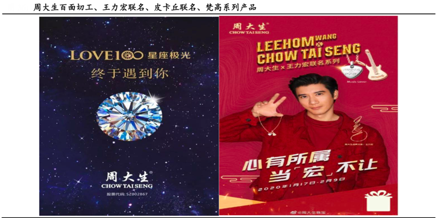 經(jīng)典案例:根據(jù)公司官網(wǎng)、國泰君安證券研究等綜合資訊表明,周大生引進(jìn)國外技術(shù)提高產(chǎn)品競爭力,持續(xù)進(jìn)行產(chǎn)品創(chuàng)新。其是國內(nèi)首家引入比利時“LOVE100”星座極光百面切工鉆石的公司,也是目前國內(nèi)唯一一家擁有百面切工鉆石產(chǎn)品的品牌,這極大程度提高了公司的知名度和產(chǎn)品競爭力。同時擁抱國際化與年輕化大趨勢,牽手設(shè)計師,推出 IP 聯(lián)名款。