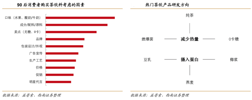 經典案例:根據益普索、西南證券等綜合資訊表明,90后在茶飲品選擇上也體現了對健康的追求,他們最關注的因素為產品口味、成分,而對品牌、包裝、廣告的關注度較低。