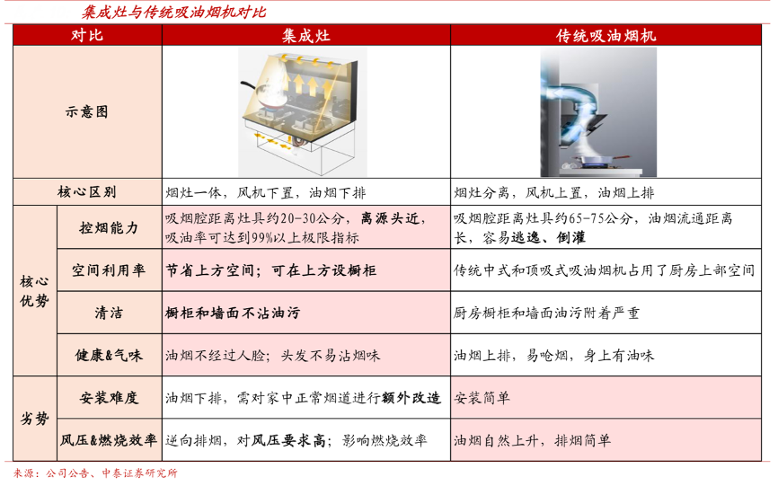 經(jīng)典案例:根據(jù)公司公告、中泰證券研究所等綜合資訊表明,集成灶采用側(cè)吸下排,吸風口較油煙源更近,較傳統(tǒng)煙機吸油效率更高,能達到99%以上的極限吸油率;同時下排集約上部空間,更加美觀。目前集成灶是開放式廚房的最好選擇。
